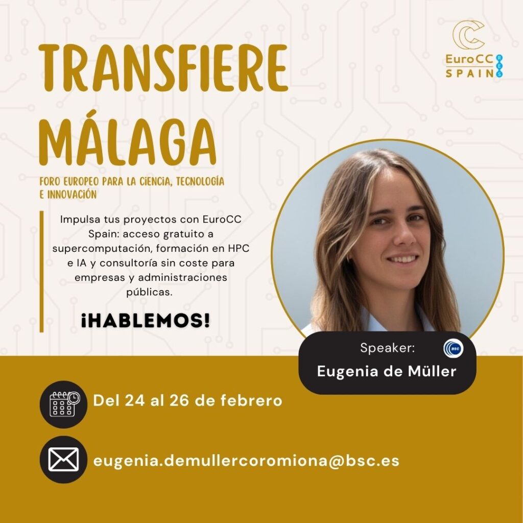EuroCC Spain estará presente en Transfiere 2026 Tipo de jornada: PresencialFecha: Del 23 al 26 de febrero de 2026Lugar: FYCMA - Ortega y Gasset, 201 – 29006 Málaga EuroCC Spain […]