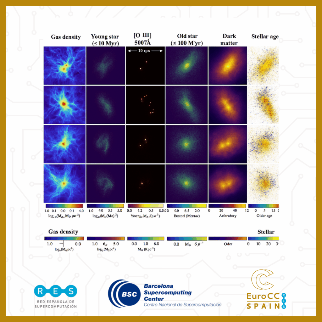 Gracias al superordenador MareNostrum5 del Barcelona Supercomputing Center, el equipo liderado por Daniel Ceverino pudo simular con precisión la evolución del sistema gravitatorio N-body y la dinámica del gas mediante una técnica de refinamiento de malla adaptativa (AMR). Para ello utilizaron el código ART, un software híbrido MPI+OpenMP que divide el volumen cosmológico completo en subdominios más pequeños y eficientes.