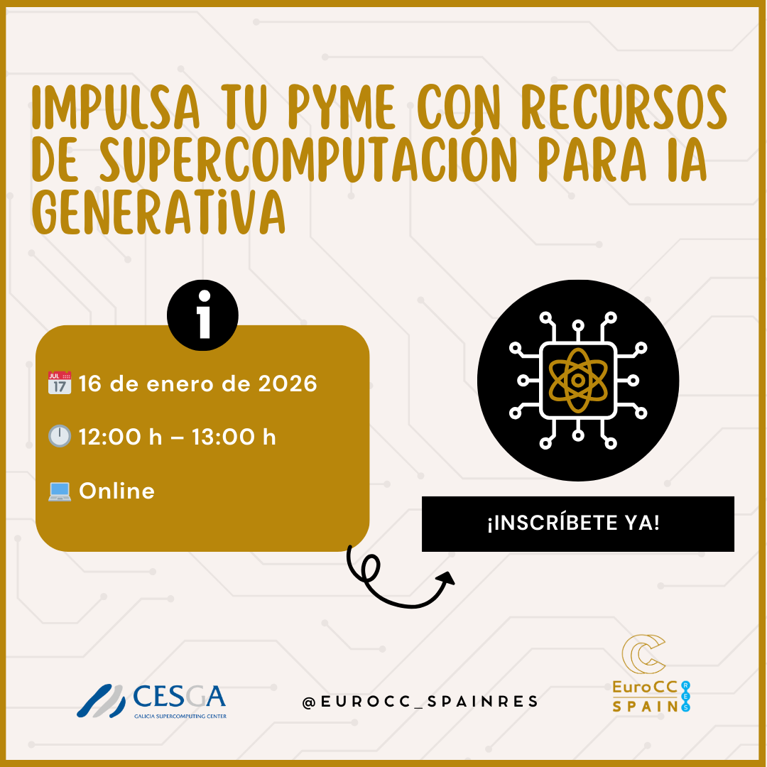 EuroCC2: Apoyo técnico y formativo para que las empresas puedan iniciarse en el uso de supercomputación con asesoramiento desde centros nacionales de competencia para facilitar el uso de HPC. FFplus: Oportunidades para pymes con un reto de negocio y un modelo de IA generativa para el cual necesitan recursos de supercomputación. EuroHPC JU: Acceso a recursos de supercomputación europeos. |